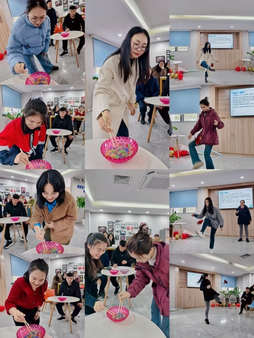 当然,最精彩的当属互动游戏环节。夹玻珠考验着大家的耐心与细心,女员工们全神贯注,筷子在指尖灵活地移动,一颗颗玻珠被稳稳夹起;踢毽子时,五彩的毽子上下翻飞,女员工们身姿轻盈,展现出蓬勃的活力;套圈圈区域则充满了紧张与期待,大家瞄准目标,抛出手中的圈,现场不时传来阵阵欢呼声与惋惜声。在游戏中,女员工们放下了往日的矜持,全心投入,仿佛回到了无忧无虑的童年时光。她们为了胜利全力以赴,团队之间相互鼓励、协作,充分展现出公司女员工积极向上、团结友爱的精神风貌。而获胜的女员工们还收获了实用又精美的奖品,喜悦之情溢于言表。