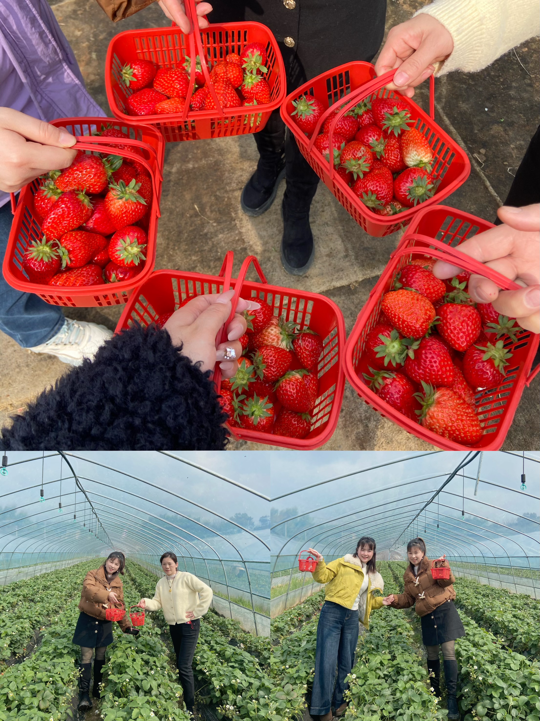 华中篇——春⽇采摘,甜蜜同⾏。华中分公司为⼥员⼯们精⼼策划了⼀场春⽇草莓采摘活动!阳光正好,微⻛不燥,⼤家⾛进草莓园,亲⼿采摘鲜红欲滴的草莓,感受⾃然的馈赠。欢声笑语中,不仅收获了满满的果实,更增进了同事间的默契与情谊。这个春天,我们⼀起在甜蜜中前⾏,期待更多美好时光!