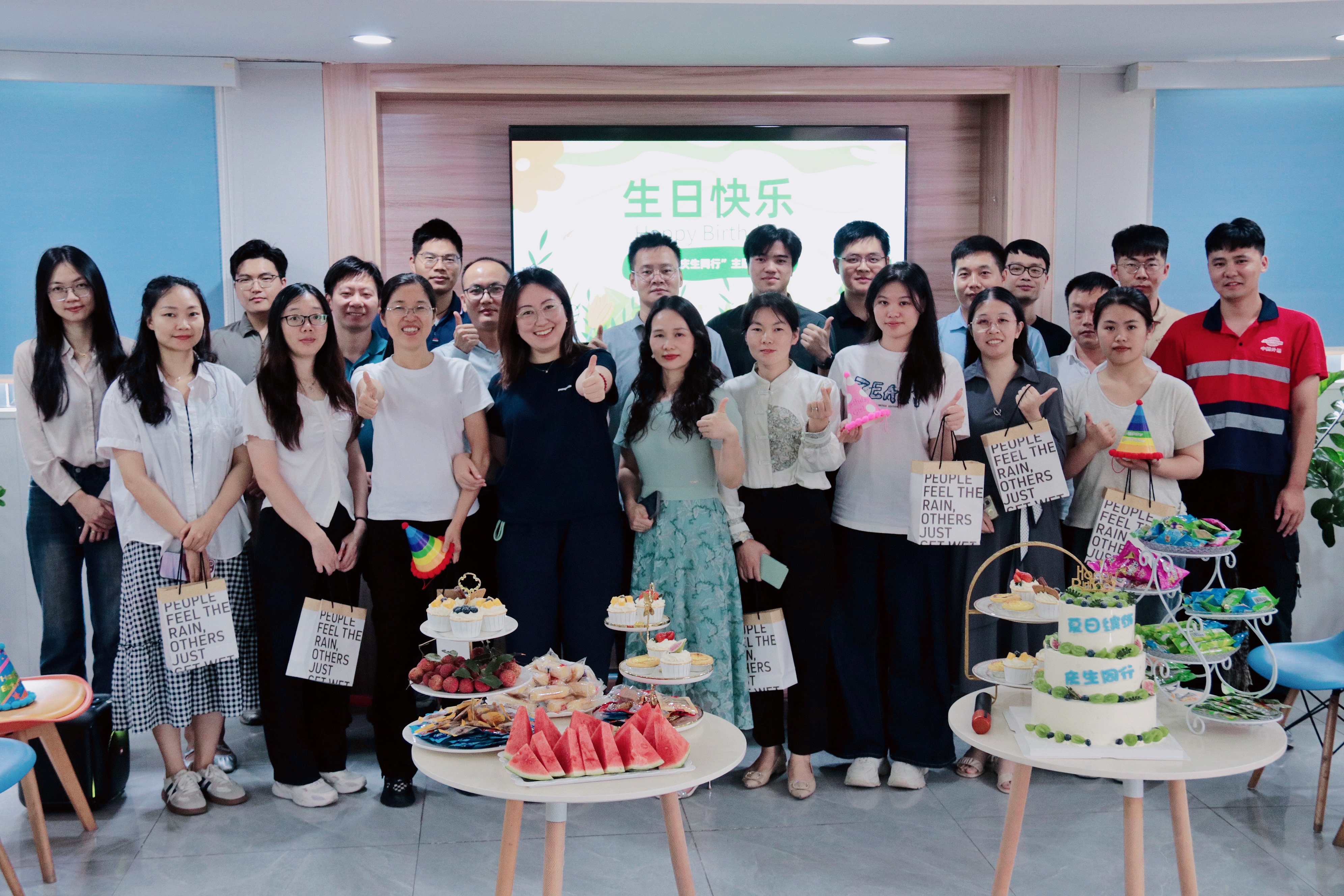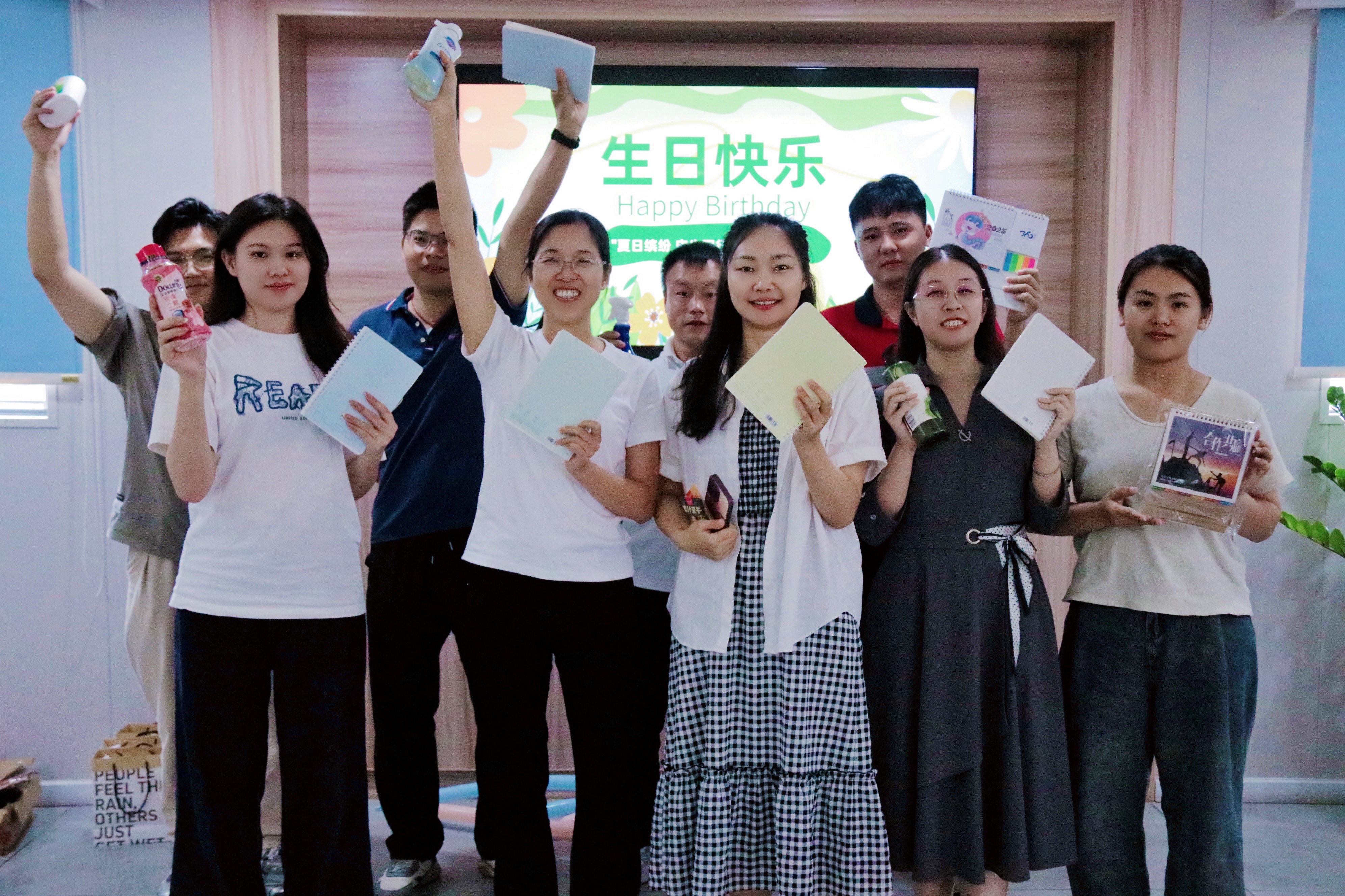 随后,工会委员为寿星们送上精心挑选的应季礼品——清爽的花露水、防蚊液与沐浴露,每一份礼物都饱含着对夏日生活的贴心考量。彭主席也借此鼓励大家:“年程过半,不妨审视工作进度,不足处迎头赶上,态度认真、用心做事,共助公司高质量发展。”