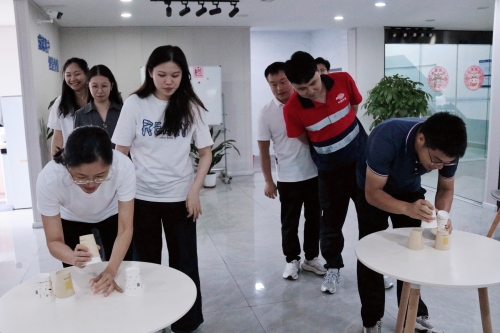 生日会的高潮当属趣味游戏环节。在“夏日冷知识抢答”中,主持人抛出“为什么夏天要吃荔枝”的问题,答案“因为荔枝夏天成熟”让大家忍俊不禁,直呼“被冷到了”,轻松的氛围中充满了欢声笑语。紧接着的“杯子叠叠乐”计时挑战赛将现场气氛推向顶点。男女分组比拼手速与协调性,女同志们以眼疾手快的优势赢得挑战,现场掌声与加油声不断。最终每位参与者都收获了游戏礼品,在协作与竞技中感受团队的活力。